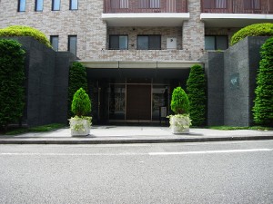 井の頭通りを住宅街へ入ったところ、『代々木上原』駅徒歩5分の立地に佇む「プレステージ代々木大山町」。ブラウン系でまとめられた外観、リゾートを思わせるバルコニー、手入れの行き届いた植栽・・・高級感の中に温かみが感じられます。