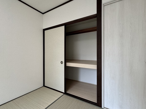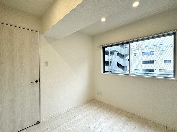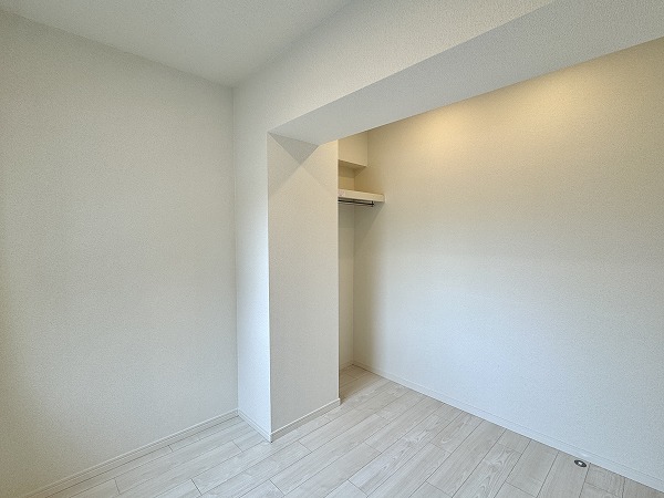 約4.5帖の独立洋室は、窓の位置が絶妙で外からの目線をシャットアウト。座って読書や作業をしても安心です。オープンタイプの収納は、衣服や小物を“見せる収納”として活かせ、日常の整理とインテリア性を両立◎