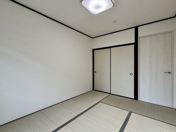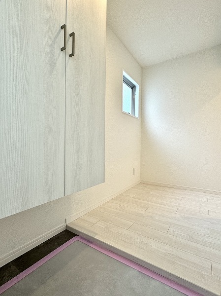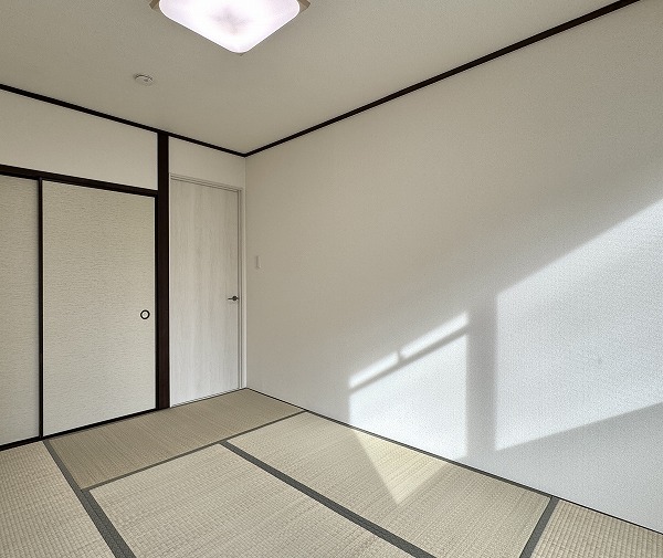 明るい南東向きの和室は、畳に座るだけでほっと落ち着ける、心安らぐ居場所。日差しがたっぷりと降り注ぎ、写真からも光の入り方がわかるほど。読書や趣味の時間、昼寝など、日常の小さなリラックスを楽しめる空間です♥