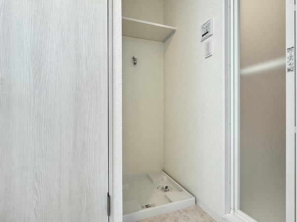 パウダールームにはトイレを併設し、生活動線すっきり。真っ白でシンプルな内装はどんなインテリアも映えるベースとなり、壁に小物やアートをプラスすれば自分らしい空間づくりが楽しめます。飽きの来ないデザインで毎日気持ちよく使えるのも魅力✧