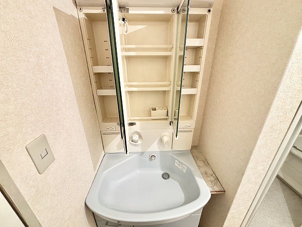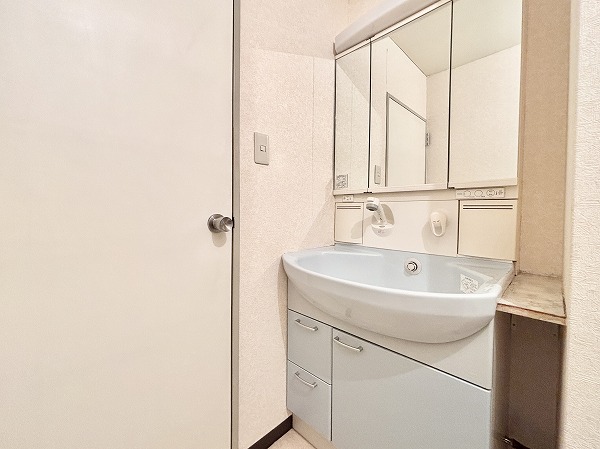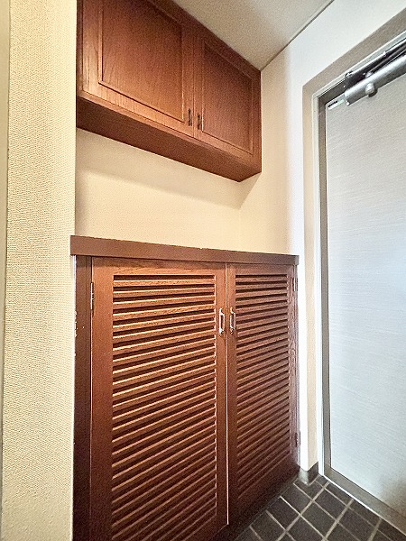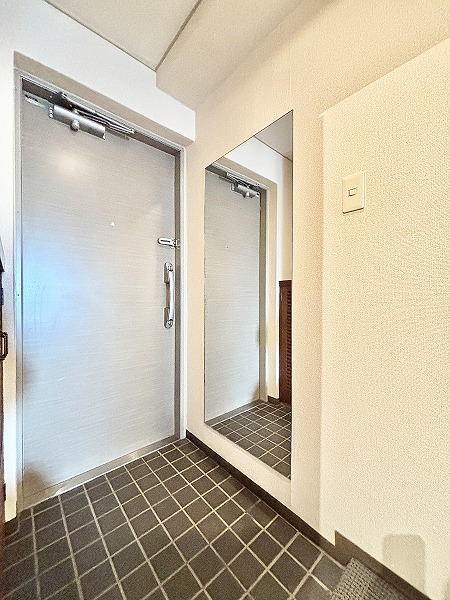 玄関はコンパクトですが、シューズボックスが設置されているので、家族全員分の靴を収納でき、スッキリとした玄関を保てます。お出かけ前には、大きな姿見で全身コーディネートチェックができるのも嬉しいポイント♬