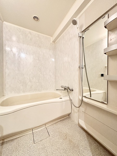 ホワイトを基調とした爽やかなバスルームをチェック✧大きなバスタブでの半身浴は毎日の疲れが取れそうですね。追い焚き機能が備わっているので、寒い冬でも快適に半身浴が楽しめます★鏡のおかげで圧迫感も軽減してくれますね。