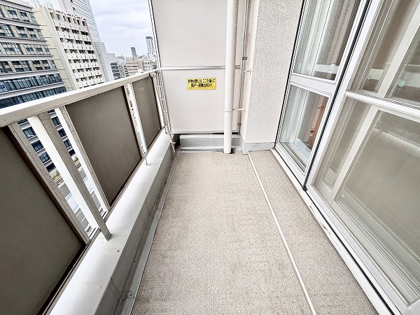 ダイニングルームから出入り可能なバルコニーは約7.14㎡あります。お部屋は12階に位置しているため、バルコニーからの景色は空を近くに感じられますよ☀大通り沿いですが高さがあるため、騒音はそんなに気になりませんでした♩