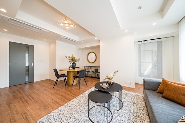 麻布十番駅から徒歩4分、さらに六本木駅も徒歩圏内という都心ならではの利便性を誇る『フォレストテラス鳥居坂』。2015年築、地下2階付地上8階建てのレジデンスで、新耐震基準にも適合しており安心感のある建物です。洗練されたデザインの外観は周囲の街並みに美しく調和し、上質な都市生活を象徴する佇まいとなっています。