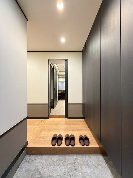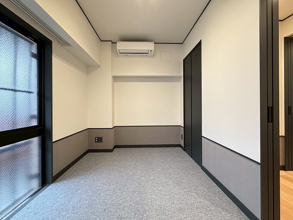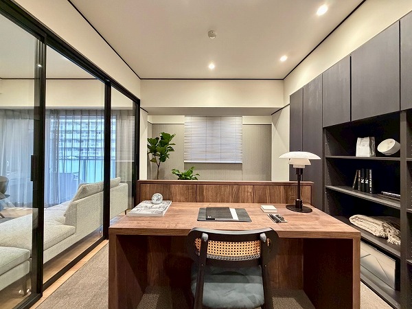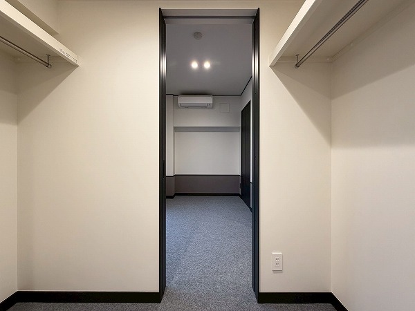 玄関に上がってすぐ左手にあるウォークインクローゼットを抜けると、約4.2帖の洋室があります。書斎やワークスペースとしてはもちろん、衣類をまとめる部屋や来客用としても対応可能。主寝室やリビングと適度に分かれているため、集中したいときや静かに過ごしたい場面にも向いています。