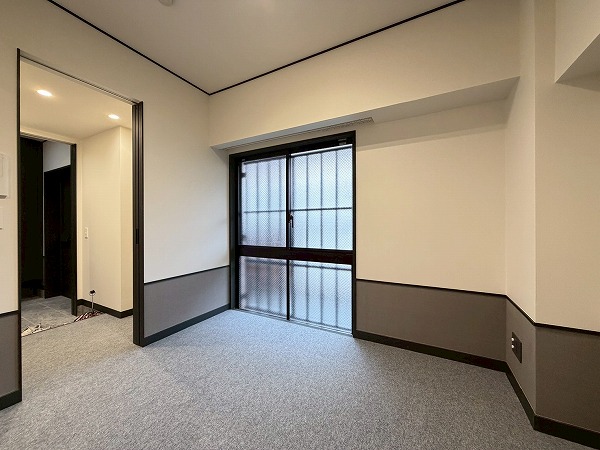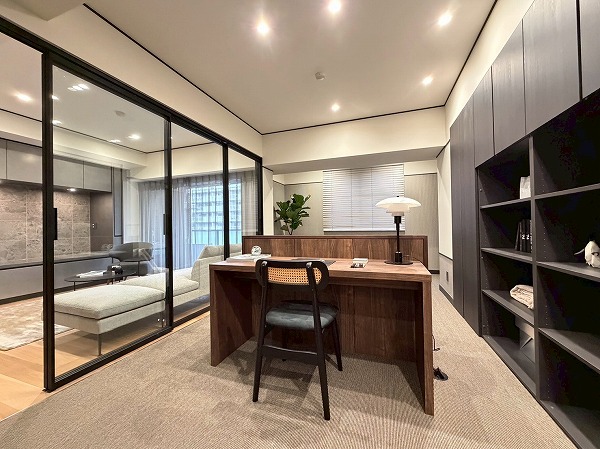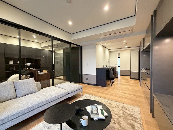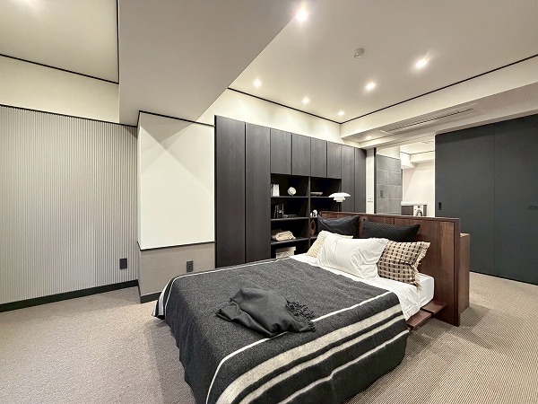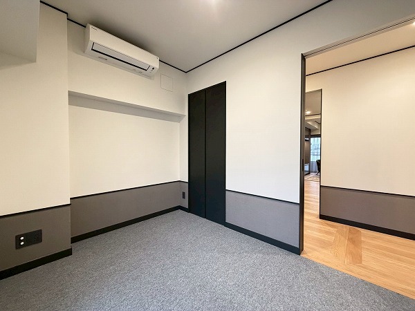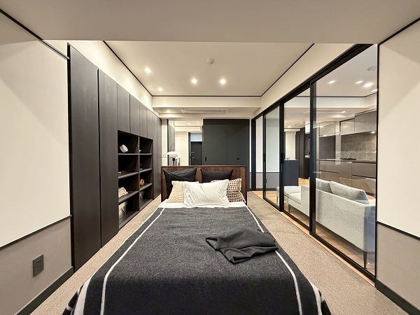 おおよそ11.0帖の洋室はリビングとガラス扉で仕切られた開放感のある設計が特徴です。扉を閉めればしっかりと独立した寝室として使え、扉を開けるとリビングと一体となり、視線が奥まで抜けることで空間全体に広がりを感じられます。