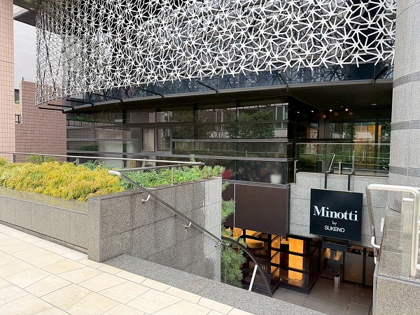 建物へと導くアプローチは、ひと目で印象に残るデザイン性の高さが際立ちます。大きく弧を描くように広がるファサードには、幾何学的なパターンが施され、光の当たり方によって表情が変わるのが特徴。