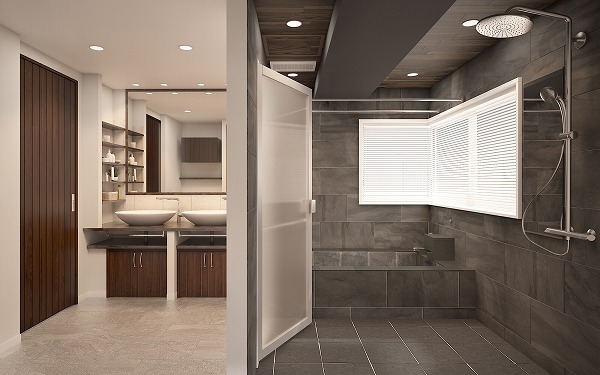 パウダールームは、思わず足を止めてしまうほどのゆとりある広さ!まるでホテルのスイートルームを思わせる設えで、日常の身支度の時間さえ特別なひと時に変えてくれます。さらに2つのパウダールームを備えているため、ひとつはゲスト専用として使うなど、暮らしに合わせた贅沢な使い分けが可能ですよ♩