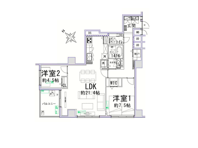 洋室は約7.5帖と約4.5帖の2部屋。約7.5帖の主寝室には大容量のウォークインクローゼットを備え、衣類や大型荷物もすっきり収納可能◎キッチンやトイレ、バスルームにも統一感のある木目デザインを取り入れ、細部までこだわりが感じられました。ウッドタイル仕上げのバルコニーに出ると、視界には緑が広がり、都心にいることを忘れるような穏やかな時間が流れます。利便性と静けさ、そして素材の温もりを兼ね備えた一邸。乃木坂で、上質な日常を紡ぐ暮らしが始まりそうです✿ ライター:hana【26B06】