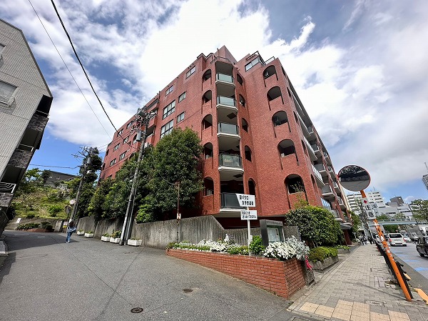 どっしりとした重厚感が漂うヴィンテージマンション『マノー乃木坂』は、凹凸のあるレンガ調の外観が印象的✧1978年築・鉄骨鉄筋・鉄筋コンクリート造の地下1階付地上8階建て、総戸数は64戸の中規模マンションです。