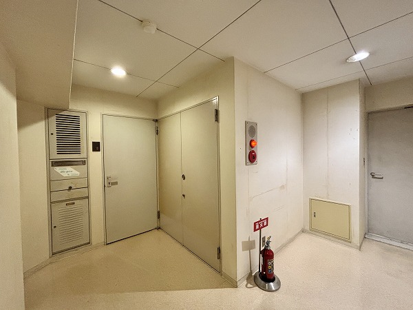 オートロックを抜けるとエレベーターホールがありました。ちょっぴりコンパクトなスペースです。居住階まではこちらのエレベーターか内階段をご利用くださいね。