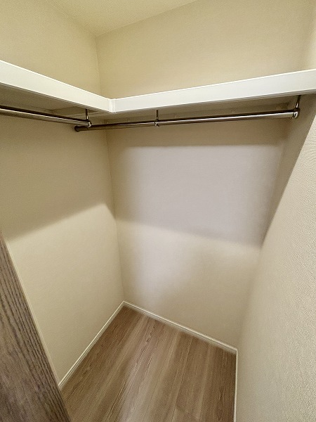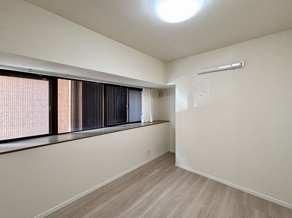 2つ目の洋室はおよそ5.1帖。南西側にワイドな窓があり、開放感がもたらされています。窓際のカウンターにはお花やフレグランス、ライトなどを飾ってみては♬また、こちらの洋室にもウォークインクローゼットが。お部屋の広さと収納力がほぼ同じなので、差を感じにくくストレス無く暮らせそう。