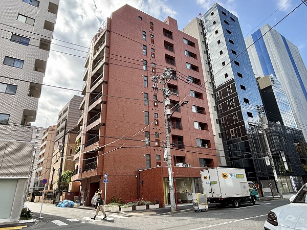 表参道駅から歩いて10分、骨董通り沿いに佇むこちらが今回ご紹介する『南青山セピアコート』です。レトロ感溢れるブラウンタイルが目を惹きます。1979年4月築地上10階建て、総戸数は27戸。
