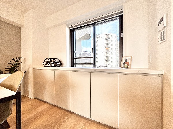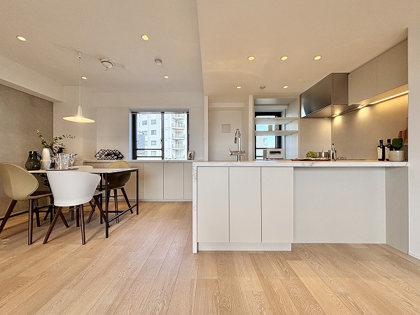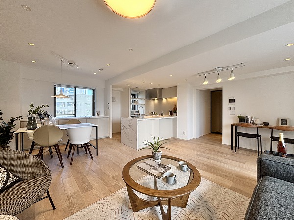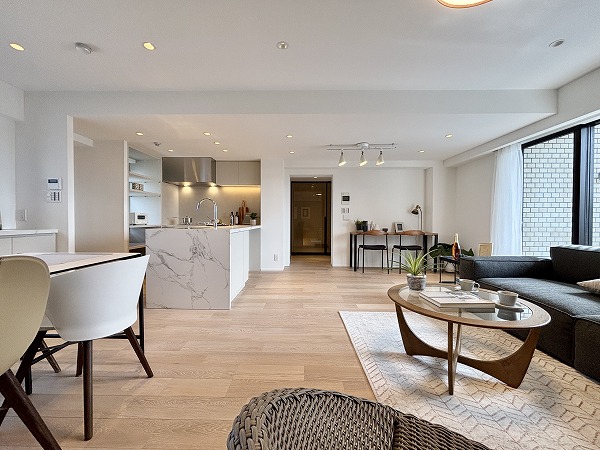 ファッションの最先端が集う街、表参道。洗練された街並みに憧れを抱いている方も多いのでは。今回ご紹介する『南青山パークマンション』は、そんな表参道駅から徒歩11分の場所に。広尾駅からは徒歩14分の道のりです。バスを使えば、渋谷駅や恵比寿駅、新橋駅方面にもスムーズにお出かけできますよ。タイル貼りのアプローチはゆったりとした造りになっていて、マンションのプライベート性を高めています。レトロモダンなデザインに、ヴィンテージマンションの品格を感じました。お目当ての1LDKは2階部分に。2023年12月に新規フルリノベーションが行われ、新築同然の綺麗な状態に生まれ変わりました。モノトーンを基調としたスタイリッシュなデザインで統一されていて、とってもオシャレな雰囲気が漂っています。置く家具にもこだわりたくなるような素敵な空間ですね。私の一押しはホテルライクなサニタリールーム。洗練されたデザインで、毎日のメイクやヘアセットがもっと楽しくなりそうですね。黒を基調としたバスルームも印象的でした。キャンドルを灯して、ほのかな明かりの中バスタイムを楽しむのものもオススメです。魅力満載な1LDKを、ぜひ一度ご内覧ください。 ライター:mii【24B24】
