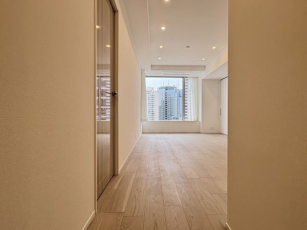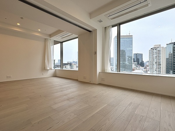 赤坂駅から徒歩8分。都心でありながら落ち着いた空気が流れる街並みを抜けると、ひと際存在感を放つのが三角形のシルエットが印象的なタワーマンション『パークコート赤坂ザ・タワー』です。三井不動産旧分譲の「パークコート」シリーズらしく、エントランスや共用部には上質で洗練された空気が漂い、都心の住まいであることを静かに実感させてくれます。お部屋は43階建ての33階部分。専有面積83.84㎡の2LDKで、2025年12月にリノベーションを終えたばかりの清新な住空間です。玄関にはシューズボックスを備え、トイレは手洗いカウンター付きの独立タイプ。木目を取り入れたパウダールームにはホテルライクなダブルボウル洗面台を設え、日常の身支度にもゆとりが生まれます。約14.9帖のリビングダイニングは、間接照明が柔らかく空間を包む長方形の間取り。白を基調とした内装と余白のある壁面が、家具レイアウトの自由度を高めています。独立した約4.5帖のキッチンにはカップボードを備え、生活感を抑えた美しい空間を保てるのも魅力。2つの洋室はいずれも7帖超えで、それぞれ異なる形状のウォークインクローゼット付き。収納量と居住性を高い次元で両立した、都心タワーならではの一邸ですよ✧ ライター:mao【26A20】