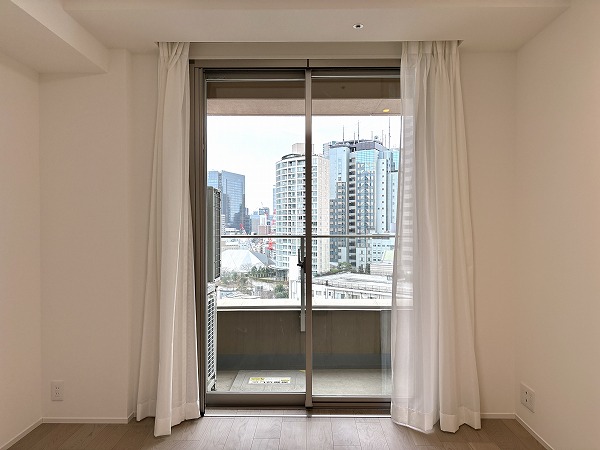 こちらは約7.1帖の洋室です。お部屋にはウォークインクローゼットとバルコニーが付いておりました。大きな窓から入る爽快な朝日が、自然な目覚めを促してくれることで、朝型の生活リズムを整えやすいですよ♩
