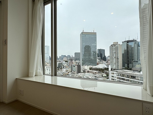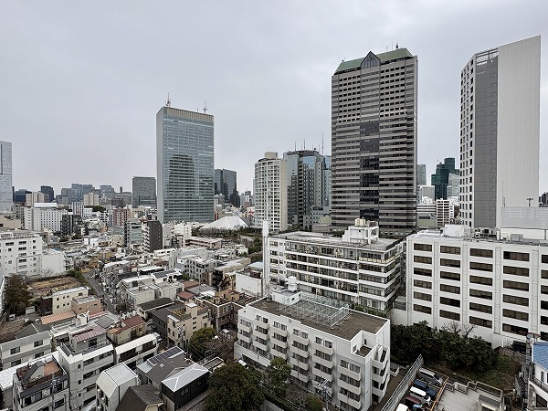 こちらがバルコニーViewです。都会的な街並みを拝むことができ、夜には東京らしい夜景を楽しんでいただくこともできます✧東向きなので洗濯物が乾きやすく、機能面でもポテンシャルの高いお部屋です!