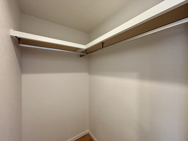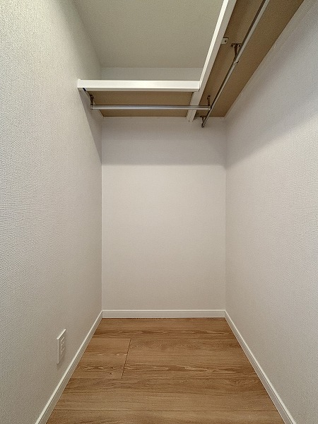 奥行きたっぷりのウォークインクローゼットは、洋服はもちろん、大きなお荷物もすっきり収納可能。日用品のストックなど、生活感を隠すのにも便利ですね。また、コンセントがあるため掃除機の充電も可能✧