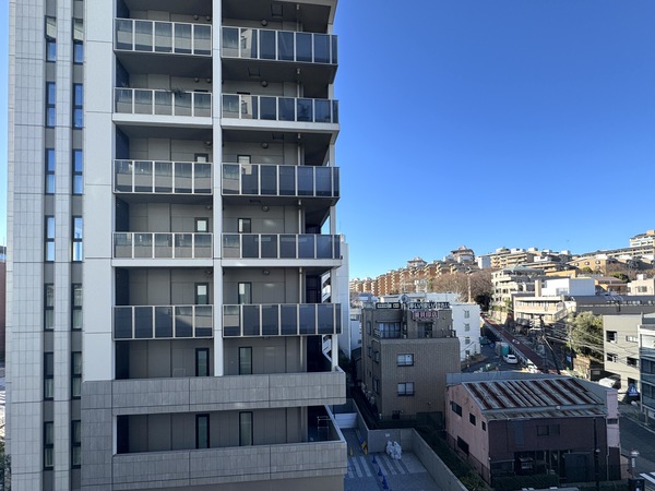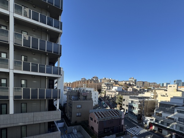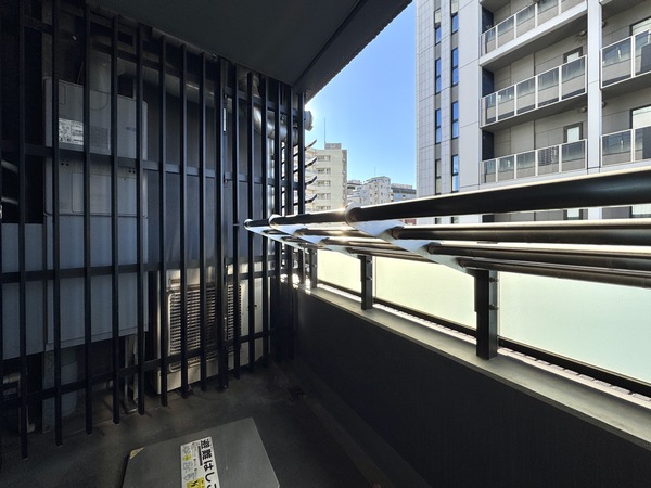 南西角部屋なこちらの1LDKには、南側と西側にそれぞれ独立したバルコニーがあります。どちらもリビングダイニングキッチンから出入りが可能ですよ。周囲に高い建物が少ないので、晴れた日には明るい日差しをしっかりと感じることができます。バルコニーの外には非常用の脱出通路が設けられていました。バルコニーからダイレクトに外に出れるのは安心ですね。