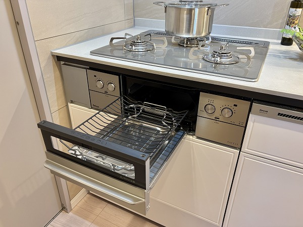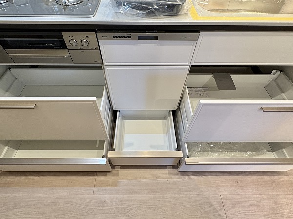 リビングダイニングと独立したキッチンは、壁向きのお料理集中型の造り✧手間と時間のかかる料理に取り掛かるときは、集中力を切らさずに没頭できますよ。コンパクトながら機能性も抜群で、お料理のクオリティを高めてくれるでしょう。
