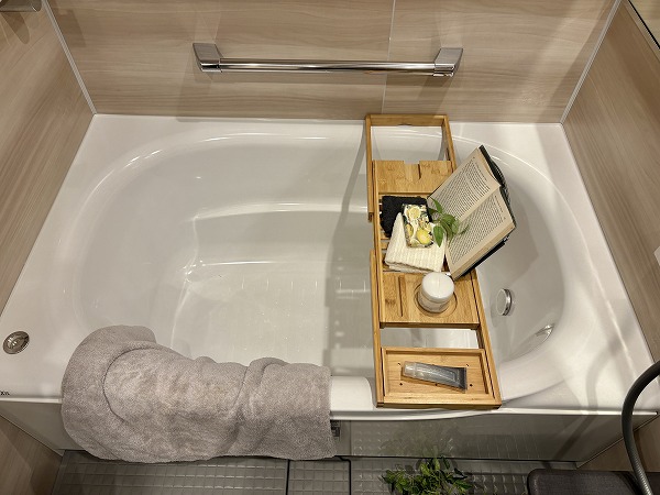 木目調の優しい色味が視覚的にリラックスさせてくれるバスルーム♩毎日の入浴をワンランク上に格上げしてくれます。ウッド調のクロスは水垢や汚れが目立ちにくく、お掃除が簡単であるというメリットも◎お掃除の手間を省いて、ストレスなく生活しましょう。