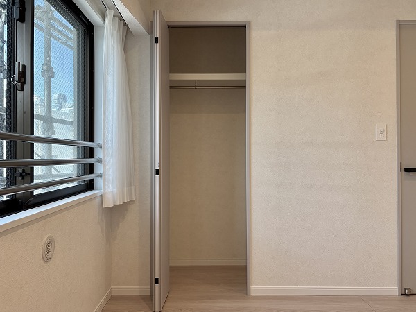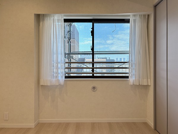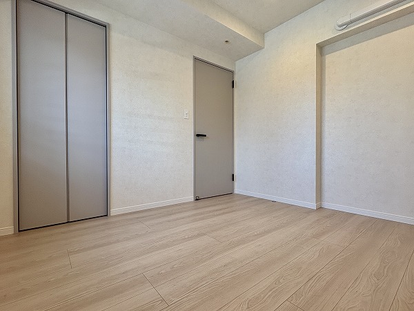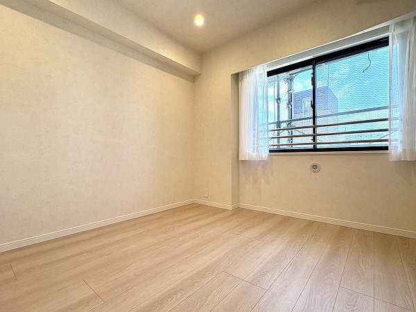 こちらは約4.5帖の洋室です。西向きの窓と、バルコニーへと続く北向きの掃き出し窓との2面採光が、適度に明るいお部屋を維持してくれるため、朝から昼過ぎにかけてのお仕事・作業にもってこいです。日の入りの時間帯にはきれいな夕焼けを望むこともできそうです☀