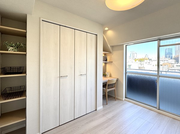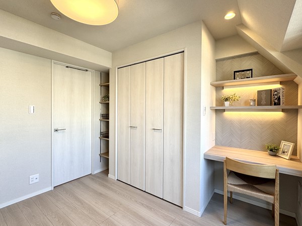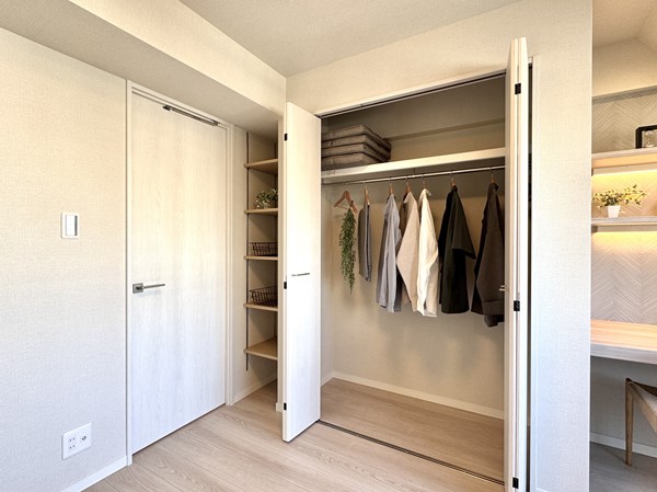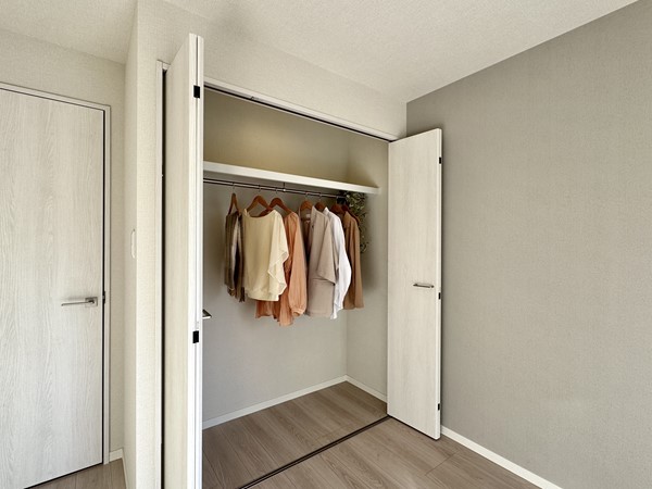 約4.5帖の洋室には1面にわたってクローゼットを完備。洋服やバッグ、小物類までたっぷりと収納できるので、ファッション好きの方にも嬉しいポイントです♪お気に入りのアイテムをすっきり整理しながら、自分らしいスタイルを叶えましょう。