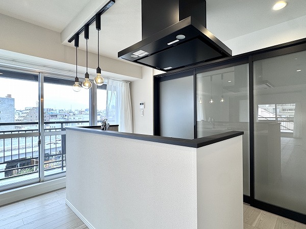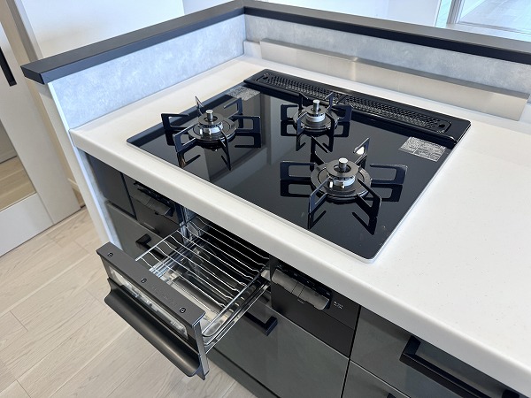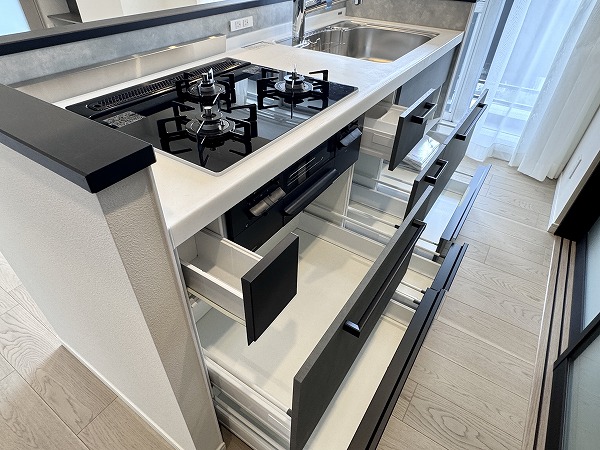 実際にお部屋を見て私が一番印象的だったのは、モノトーン基調のオシャレなキッチン。