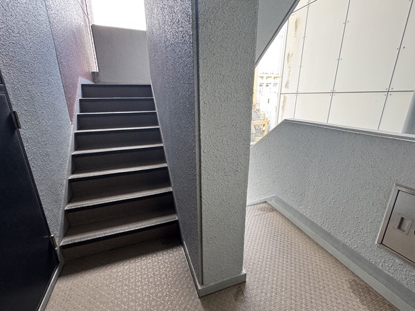 エントランスを入るとメールボックスが並んでいます。お部屋に帰る途中にあるので、使い勝手の良さがポイント。入り口の監視カメラに加えオートロックも完備され、安心のセキュリティです。