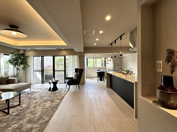 今回ご紹介した『ウィスタリア元麻布』は東京メトロ南北線と都営大江戸線の2路線が乗り入れる麻布十番駅より徒歩4分の位置するヴィンテージマンション。石目調の壁に赤いカーペットが敷かれたエントランスはまるで高級ホテルのロビーのような空間でした。入口にはオートロックが完備されセキュリティー面も安心。昭和築でややレトロ感はありますが、共用部は隅々まで清潔に保たれており管理体制の良さを伺えます。お部屋はファミリータイプの3LDK。約32帖のメインルームは大きな窓やコーナーウィンドウが取り入れられた2面採光となっており開放感抜群。ビルドインエアコンと床暖房が完備されているのも嬉しいですよね。複数人で料理をするのにも最適なアイランドキッチンや、洗面ボウルが2つ設けられた洗面化粧台、豊富な収納など、家族が多くてもゆったりとお住まいいただけそうなお部屋です。ぜひ1度内見してみてくださいね。 ライター:kayo【25J01】
