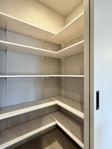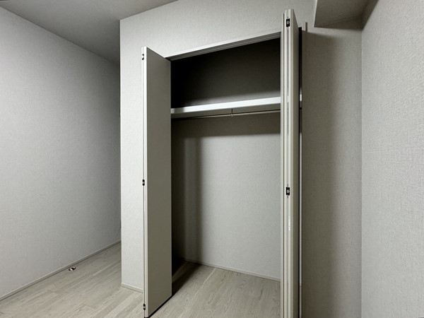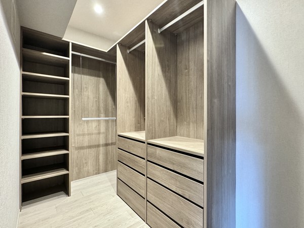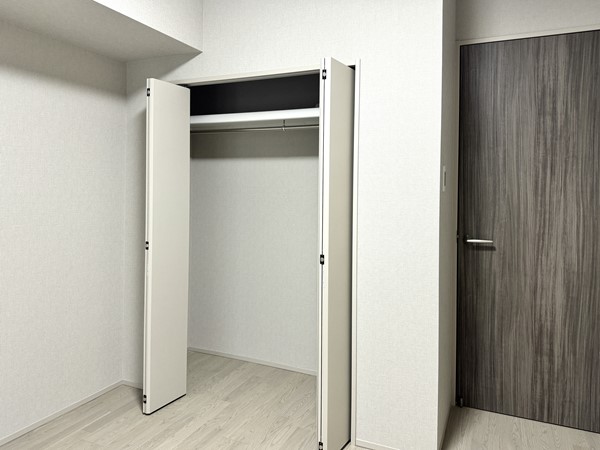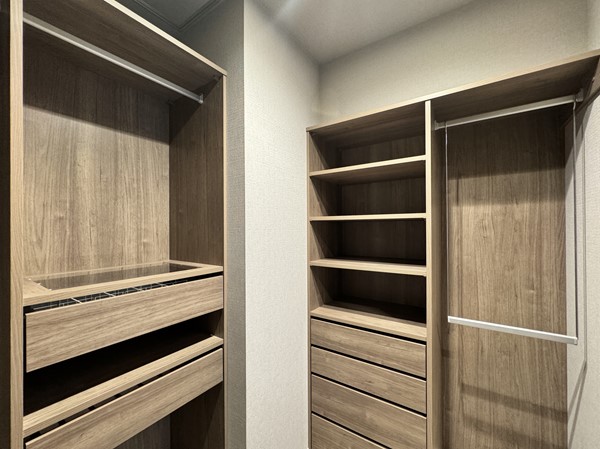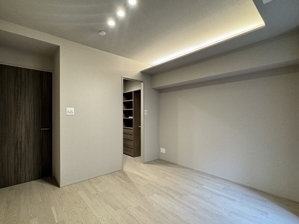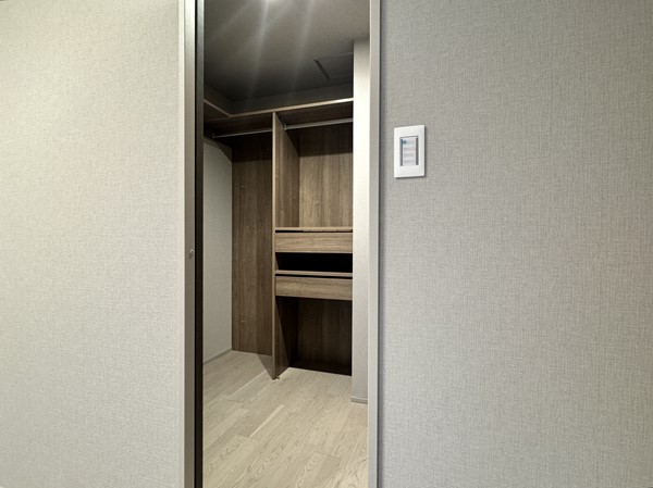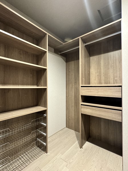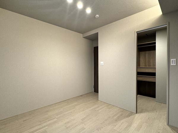 約7.2帖のお部屋には大きなウォークインクローゼットが完備されていまいた。他にも玄関の大きなシューズクローゼットや、メインルームのDENなど、全体的に収納が豊富となっており、空間を無駄なく活用できるように配慮されたお部屋でした。