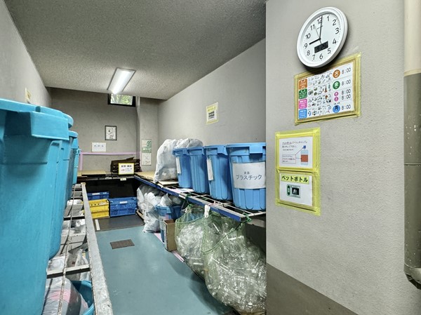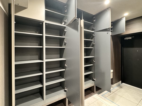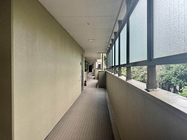 入口はオートロックを完備したガラス張りの自動ドアとなっていました。エントランス前にはしっかりと屋根があり、天気が悪い日でも落ち着いて雨具の出し入れをすることが出来そうですね。