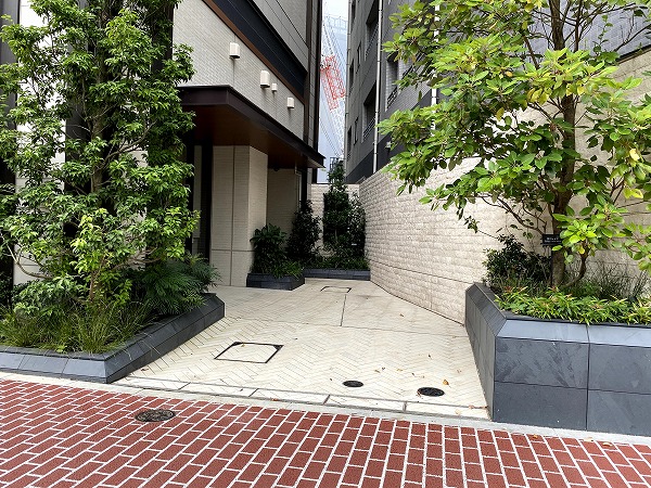 天井高で海外のホテルを思わせる、エントランスアプローチ。宅配ボックス完備で、ネットショッピングも気兼ねなく楽しめます。24時間ゴミ出し可能なのも嬉しいポイント。