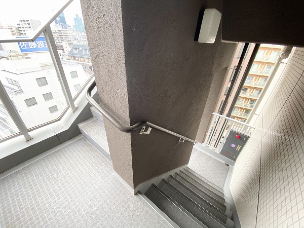 エレベーターは1基のみの落ち着いた設計。階数によっては、気分転換を兼ねて外階段を利用するのも心地よいリフレッシュに。静かな内廊下を進みながら、お部屋へと向かいましょう。