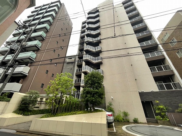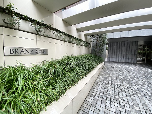 こちらがお目当ての2011年築の『ブランズ南麻布』。全30邸で構成された、シャープなラインが美しいモダンレジデンスです✦洗練された佇まいが、この街の上質な空気感にしっくりと馴染みます。