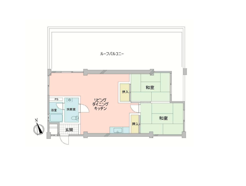 室内はリビングダイニングキッチンを中心に和室が2部屋配置された間取り。どちらの和室もほぼ同じ広さで収納付きのため、使い勝手に差が出にくく、お部屋割りに悩む心配もなさそうです◎角部屋ならではの設計で、全居室に窓が設けられている点も魅力のひとつ。自然光と風を感じながら、心地よくお過ごしいただけますよ♪水回りはコンパクトにまとめられ、動線が短く家事効率も良好。