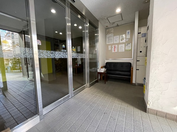 エントランスにはカードキー式のオートロックを採用し、セキュリティ体制はばっちり。荷物置場やベンチが設置されており、客人への配慮が親切ですね。さらに宅配ボックスが設置されており、日中忙しい方でも安心してお荷物の受け取りができますよ。