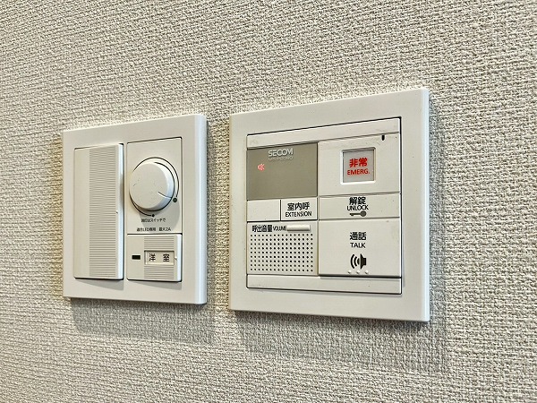 透明感あふれるエントランスは明るく爽やかな雰囲気。オートロックと監視カメラが設置され、セキュリティ面は申し分ありません。帰宅する動線上に宅配ボックスがあるので、宅配をよく利用する方もスムーズに受け取れますね。