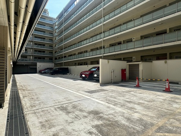 駐車場は敷地内に設けられていました。シャッターが付いているため防犯性が高く、いたずらや盗難の心配が無さそうです◎駐輪場には屋根があるので、雨風によって大切な車両が劣化するのを防ぐことができますよ。