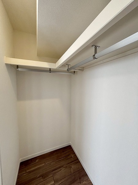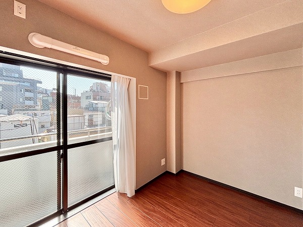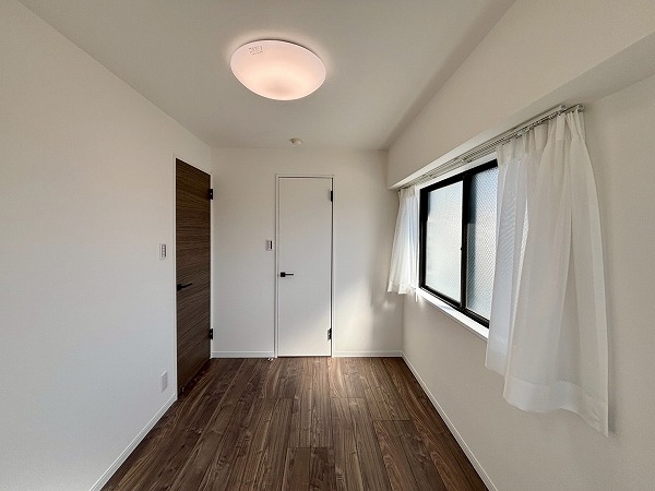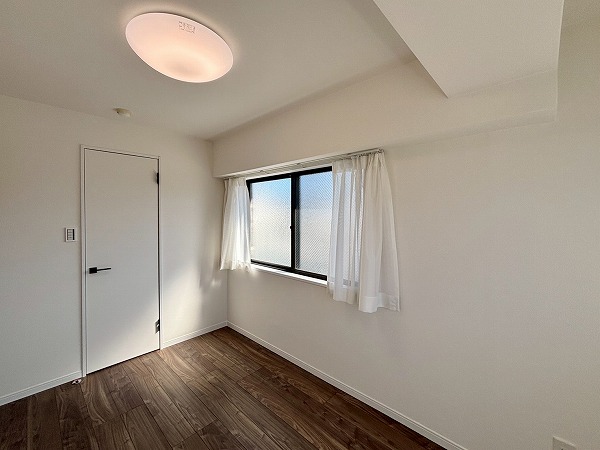 メインルームに面したおよそ5.1帖の洋室は南と東の2面に窓があり、太陽の光が燦々と降り注いでいます。朝日を感じながら目覚められ、1日を心地良く始めることができますよ。さらに、大きなウォークインクローゼットを完備。お洋服はもちろん、季節家電の保管場所にもピッタリ。
