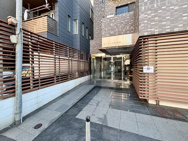グレータイル貼りの外観デザインが特徴の『サンセール神楽坂』。1992年2月築でまだまだ新しいマンションです。総戸数は113戸。地震の揺れに強い新耐震基準を満たしています◎数年前に大規模修繕工事が実施されており、どこも綺麗な状態でした。