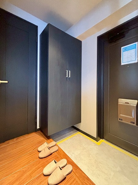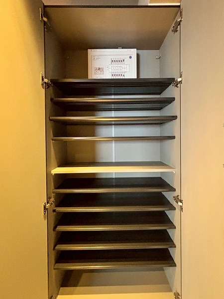 玄関には大きなシューズインクローゼットが。奥行きがあるので、たくさん靴をしまうことができます。空いたスペースにベンチや小さな椅子を置けば、編み込みブーツやハイヒールなどの履きにくい靴も脱ぎ履きしやすく快適。引き戸を閉められるのも便利ですね。