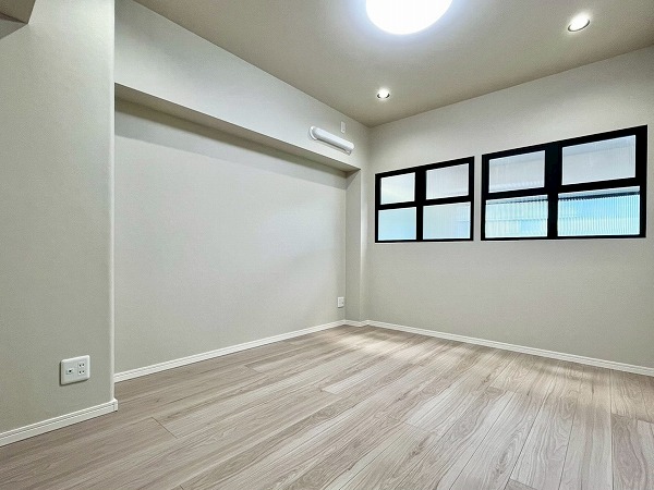 洋室はお部屋の中心に位置しており、完全に外に面した窓はない造り。朝の眩しい光よりも、ほのかな明るさで目覚めたい方におすすめですよ。