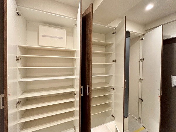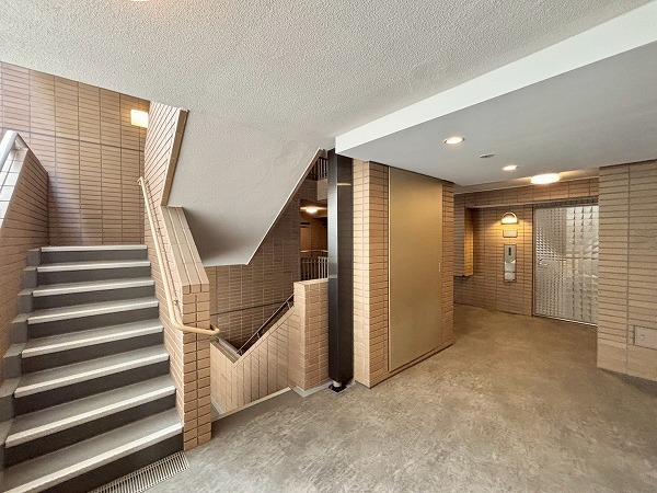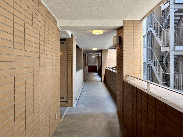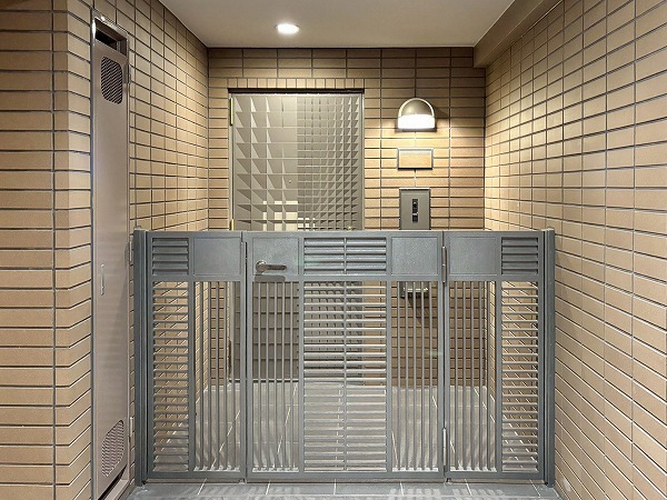 9人乗りのエレベーターを2基完備しているため、通勤時間帯も待ち時間はそこまで長くかからなそう。居住フロアは風通しの良い外廊下仕様。ポーチやアルコーブがあるお部屋が多く、住民のプライバシーへの配慮が伺えました。