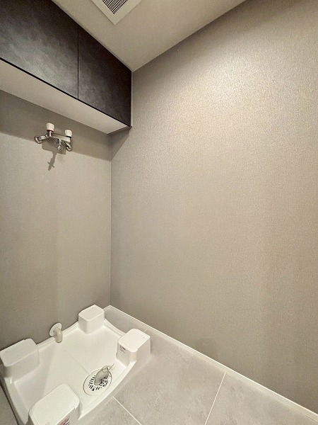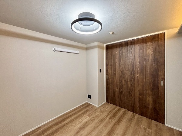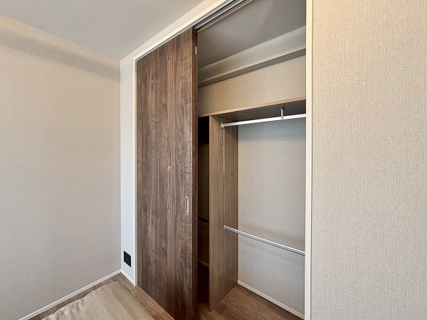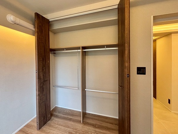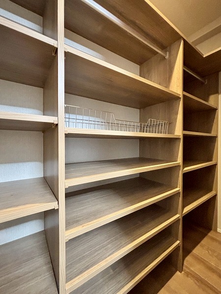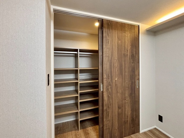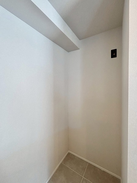 サニタリールームと廊下を挟んだ向かいに洗濯機置き場が独立して備わっていました。戸で隠すことができるので、急な来客時にも慌てずに済みますね。ゆとりがあるで、こちらをランドリールームとしてご使用いただけます。