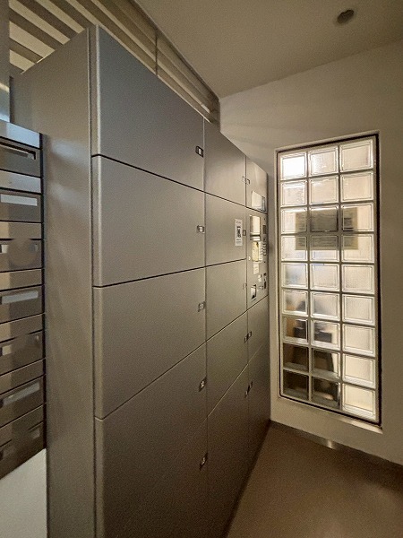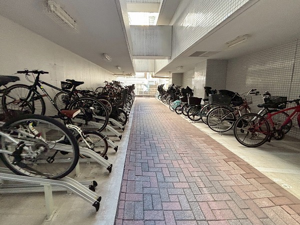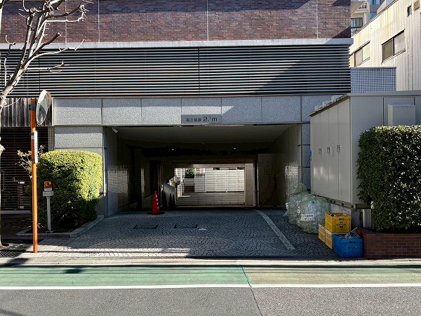 サブエントランスの傍に駐車場を発見。電動ゲートが備わっていて、防犯性はバッチリ。こちらから車に乗り込めば、雨に濡れることはありません。駐輪場へはエレベーターホール側のドアから行き来できます。