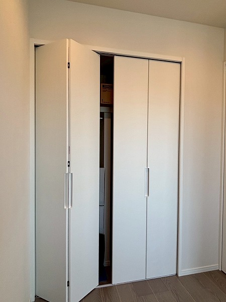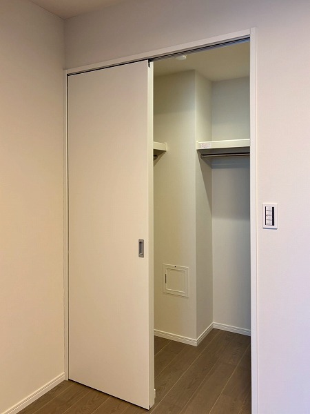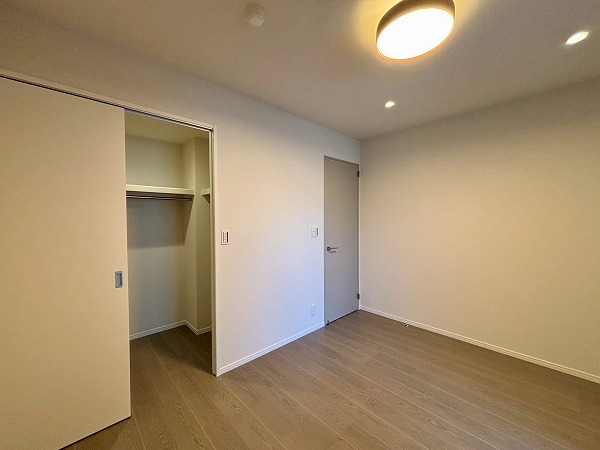 先程の洋室には、こちらの大きなウォークインクローゼットを完備しています。3面に枕棚とハンガーパイプが備わっていて、たくさんお洋服をしまえます。扇風機や加湿器などの季節家電もこちらで保管できそう◎もう1部屋の洋室にも大きなクローゼットが設けられていました。