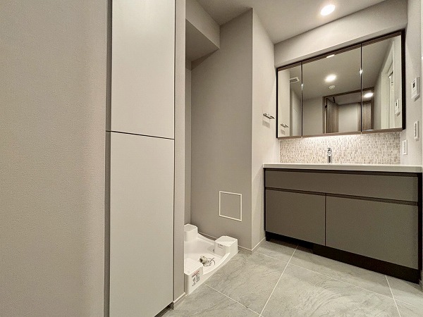 『ディアナコート小石川播磨坂レジデンス』は2025年11月に完成したばかりで、マンション内にはまだブルーシートが敷かれている箇所が多かったです。どこもピカピカで、快適にお過ごしいただけるはず。ちなみに、すぐ近くに「ディアナコート小石川播磨坂」というシリーズのマンションがあるので、間違え無いようにご注意くださいね。