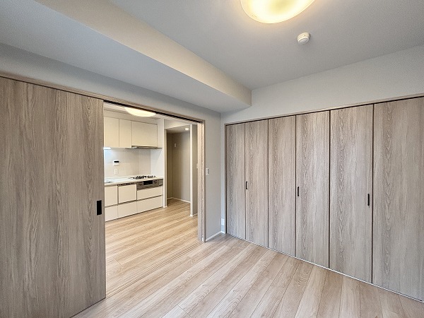 メインルームと引き戸で区切られたおよそ6.2帖の洋室。バルコニーへ繋がる大きな窓があり、とっても開放的です。普段は引き戸を開けて、16帖超えの広々空間として利用することもできます。シチュエーションに合わせて使い方を選べる間取りです。