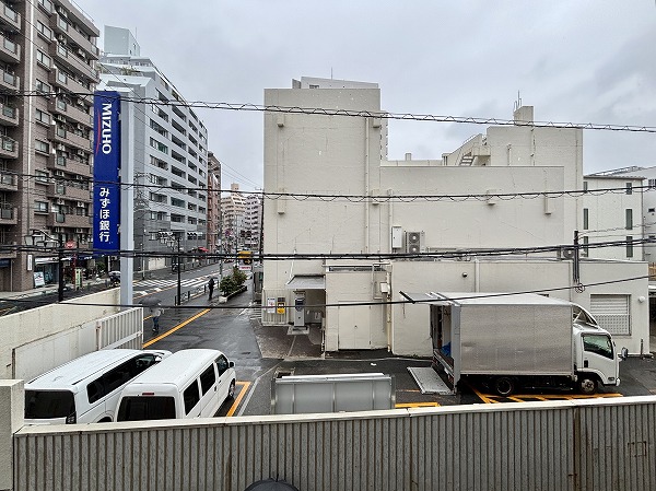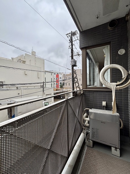 南向きのバルコニーは3.04㎡とコンパクト。お洗濯物はバスルームの浴室換気乾燥機を使って乾かすのが良さそうですね。ちょうど目の前が駐車場で視界が開けており、日当たりはばっちりです。